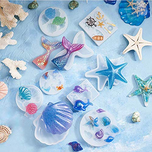 ISuperb 9 pezzi Stampo in Silicone Stampi per Colata di Resina Stella Marina Resin Muffa Strumenti per Pendente Gioielli Collana DIY (Trasparente)