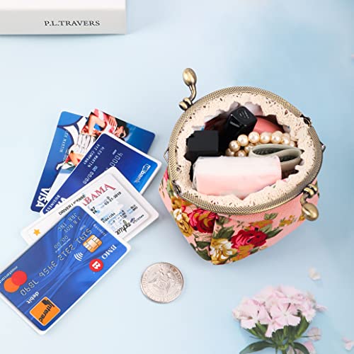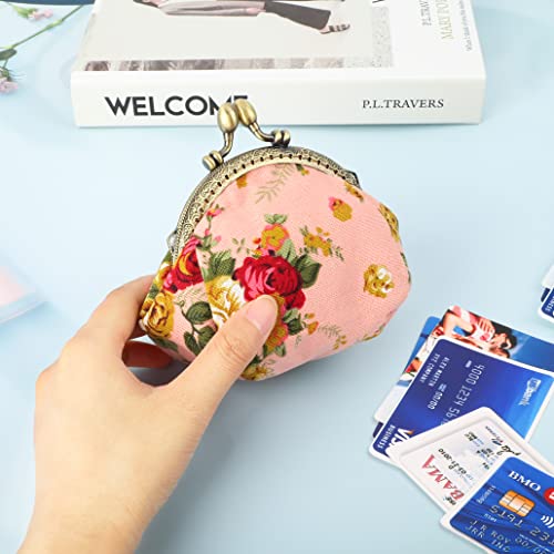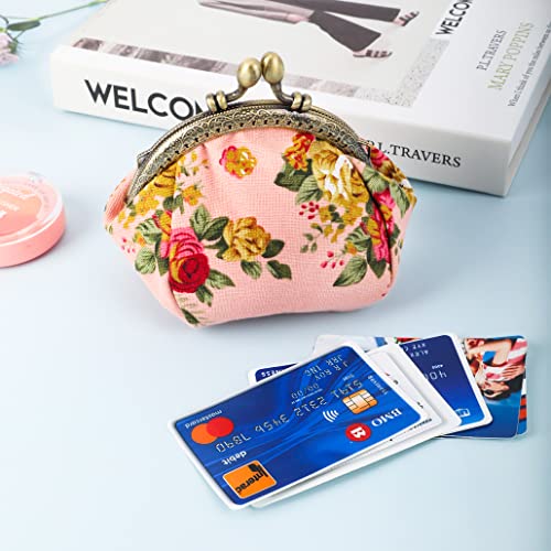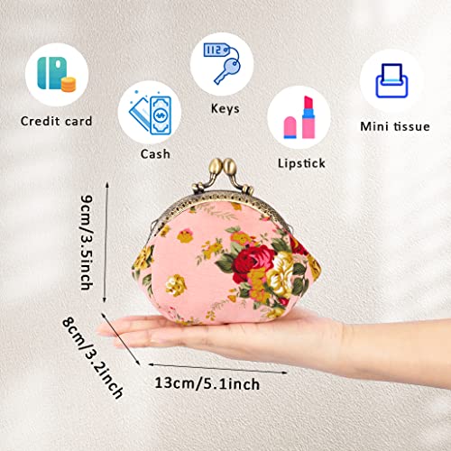 ISuperb Portamonete Chiusura a Scatto Borsellino Tela Monete Portafoglio Piccolo Mini Coin Purse Kiss-Lock Wallet Piccolo Borsa Metallo Retro Vintage Borsetta Regalo per Donna e Ragazza (Rosa)