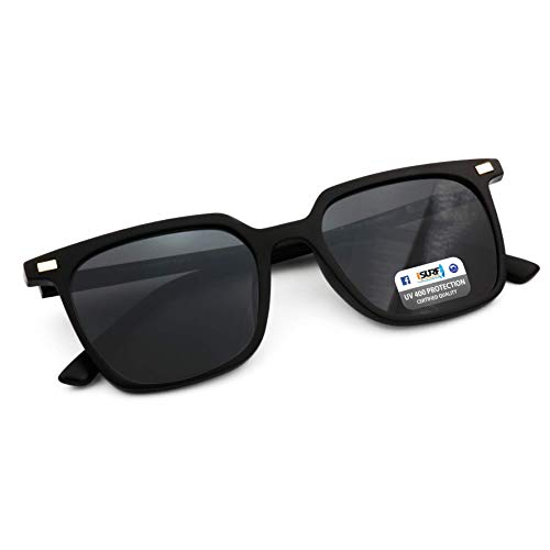 Isurf eyewear occhiali da sole marca modello papillon lente chiara scura da sera quadrato con montatura retta non avvolgente (nero opaco lente nera)