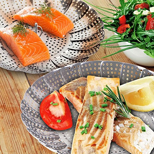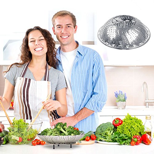 ISWEES 2 Pezzi (Piccolo & Grande) Cucina Cestino a Vapore Pieghevole in Acciaio Inossidabile della Maglia,Diametro 14 a 27 cm