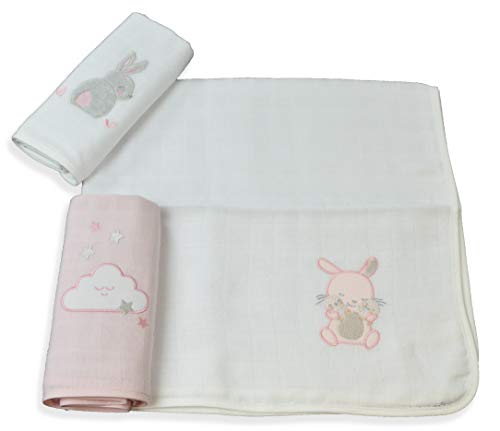 Italbaby Set di 3 Mussole Ricamate Rosa
