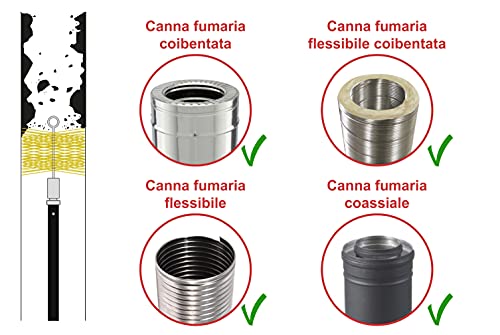 ITALBURN Kit 6 Metri Aste con Scovolo Nylon 180 mm Spazzola Spazzacamino Pulizia Canna Fumaria Legna Caldaia Caminetto Camino Stufa Rimuove Ceneri Incrostazioni