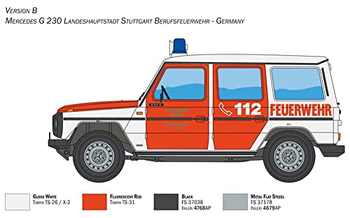 Italeri 3663 Mercedes Benz G230 Feuerwehr, Scala 1:24, Plastic Model Kit, Modello in Plastica da Montare, Modellismo, rosso
