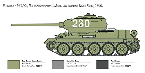Italeri 6585 T-34/85 Korean War, scala 1:35, plastic model kit, modello in plastica da montare, modellismo, mezzi militari, verde