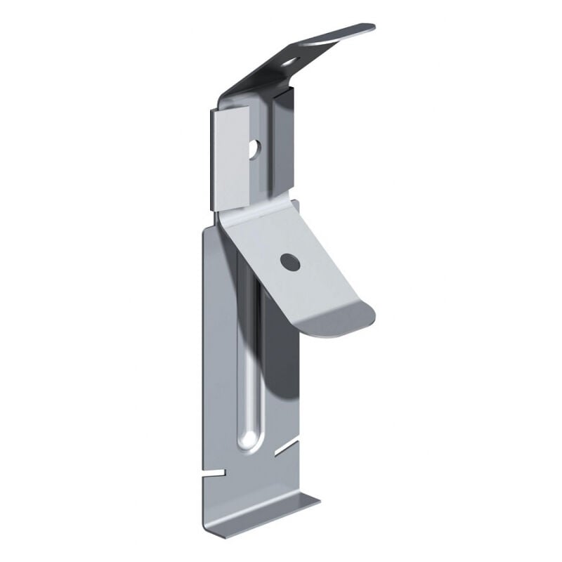 Gancio con Molla per Profili a Scatto per Guide a U 40/28/40 - Confezione 10 Pezzi DESCRIZIONE PRODOTTO Prodotto realizzato in acciaio zincato utilizzato nelle controsoffittature per agganciare il profilo primario da controsoffitto (PROFILO A SCATTO) U/40/28/40 al quale viene fissato (a scatto) il profilo montante C/15/48/15 o C/27/48/27. Spessore gancio: 12/10 mm Spessore molla: 7/10 mm Reazione al fuoco (EN 13501-1): A1