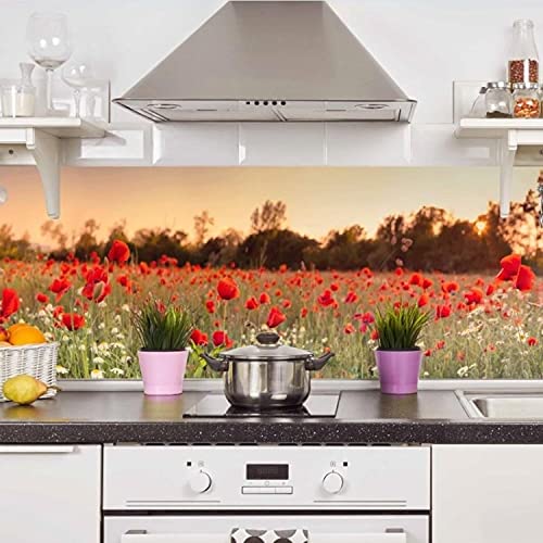 Deco Italia Paraschizzi Adesivo Campo di Papaveri per Retro fornelli Cucina, Pannello Schienale ignifugo Autoadesivo | 260 x 60 cm