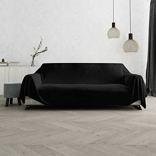 Italian Bed Linen Max Color Telo Copritutto in Tinta Unita, 100% Cotone, Nero, Singolo, 170 x 300 cm