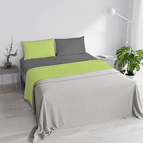 Italian Bed Linen Completo Letto Natural Color, 100% Cotone, Verde Acido/Fumo, Matrimoniale