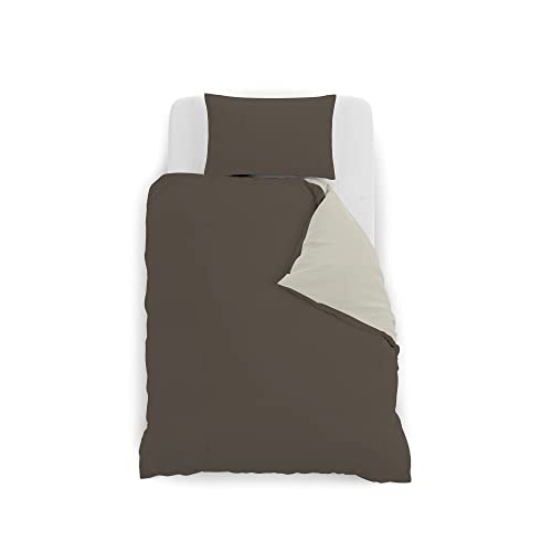 Italian Bed Linen Natural Color Parure Copri Piumino, 100% Cotone, Marrone/Panna, Piazza e Mezza, 2 unità