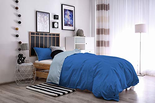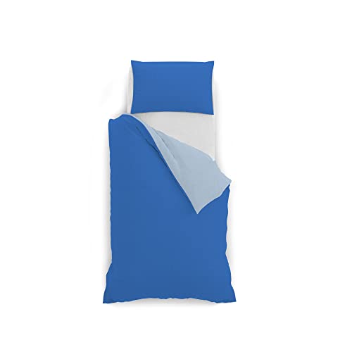Italian Bed Linen Natural Color Parure Copri Piumino, 100% Cotone, Royal/Azzurro, Singolo, 2 unità