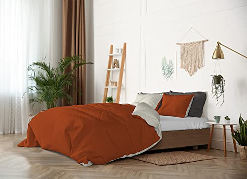 Italian Bed Linen Natural Color Parure Copri Piumino, 100% Cotone, terra/panna, MATRIMONIALE, 3 Unità