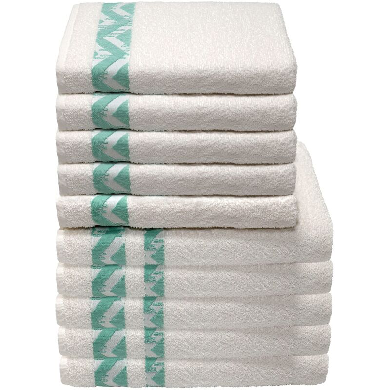 Spugna Kate. Set composto da 5 salviette ospite misura 40x55cm e 5 salviette misura 50x100cm. Articoli realizzati in 100% cotone grammatura: 400gr/mq. Per un corretto mantenimento del prodotto si consiglia il lavaggio in lavatrice a 40 gradi, non candeggiare, non pulire a secco, stirare.