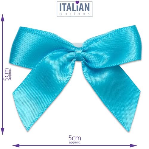 Italian Options Fiocchi di raso autoadesivi, confezione da 12 pezzi, larghezza fiocco 5 cm, turchese