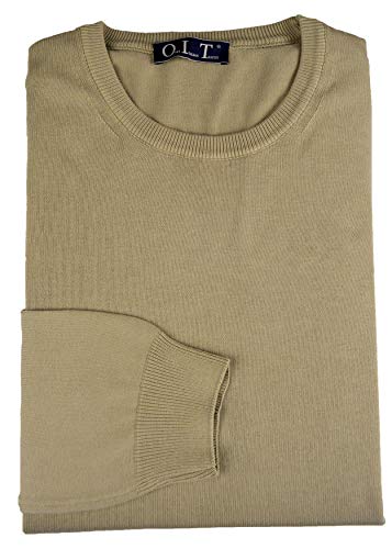 Only Italian Tricot Maglione Uomo Pullover Paricollo Cotone 100% con Maglia rasata Made in Italy XL Beige Dune