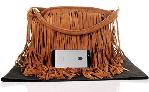 Italiano camoscio cuoio splendido fiocco lungo Grab o spalla borsetta con Metalwork oro e tracolla staccabile. Fornita nella pratica custodia protettiva marca