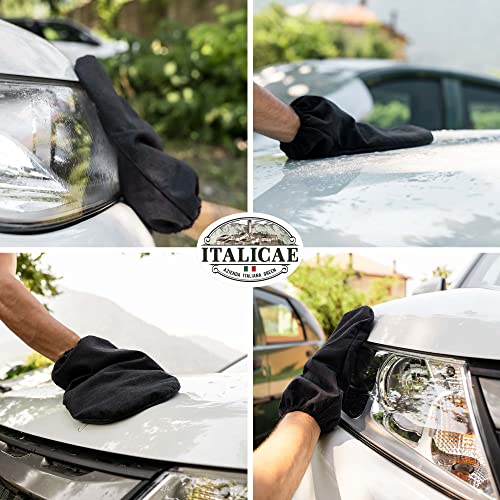 ITALICAE guanto lavaggio auto MADE IN ITALY - guanto microfibra auto ultra assorbente, perfetto anche per il lavaggio moto - Panno in microfibra nero 1PZ 30x20cm - Ottimo per la lucidatura auto
