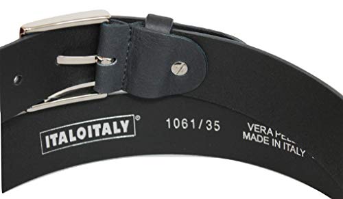 ITALOITALY - Cintura Donna in Vera Pelle, Morbida, ca. 3,5 cm, Prodotto Artigianale, Made in Italy, Accorciabile (Blu scuro, Lunghezza totale cm 105)