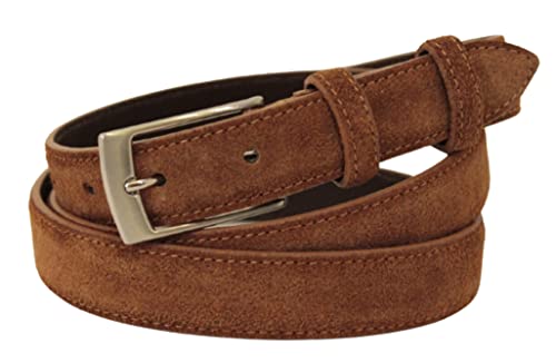 ITALOITALY - Cintura in Vera Pelle Scamosciata, ca. 2,5 cm, Prodotto Artigianale, 100% Made in Italy, Unisex, Accorciabile (Marrone, Girovita 110 cm = Lung. totale cm 125)