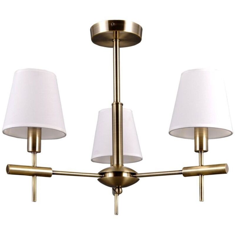 Italux Balter - Finitura: dorata | Finitura paralume: bianco, tessuto | Materiale: metallo, vetro | Classificazione IP: IP20 | Altezza (cm): 44 | Diametro (cm): 54 | Tipo di lampada: E14 | Numero di lampade: 3 | Potenza: 40W | Lampadina inclusa: no
