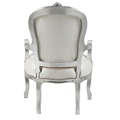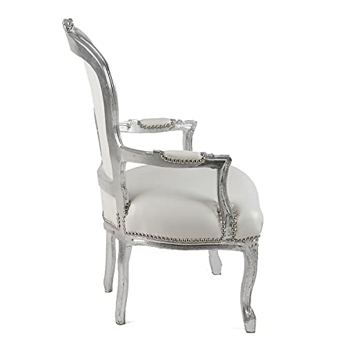 ITALUX MORE LIGHT Poltrona Barocco in Mogano Argento e Eco Pelle Bianca