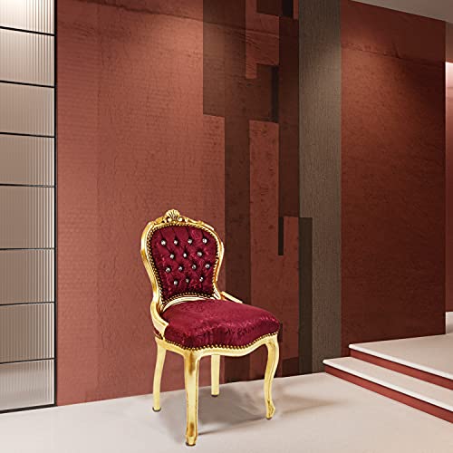 ITALUX MORE LIGHT Poltroncina Barocco - Stile Luigi XIV° - Sedia in Mogano Oro e Seta Rossa Damascata Dimensioni cm H88x46x46