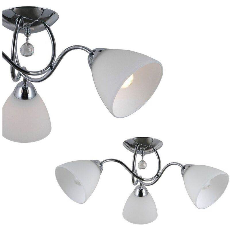 Italux Lugano - Finitura: cromo, bianco | Finitura paralume: bianco | Materiale: acciaio, vetro | Classificazione IP: IP20 | Altezza (cm): 18 | Larghezza (cm): 50 | Tipo di lampada: E27 | Numero di lampade: 3 | Potenza: 40W | Lampadina inclusa: no
