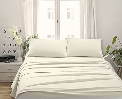 Bee Made in Italy - CAPRI Completo lenzuola per letto singolo 3pz in Cotone - 1 sopra + 1 sotto con angoli + 1 federa 50x80 cm (Panna)