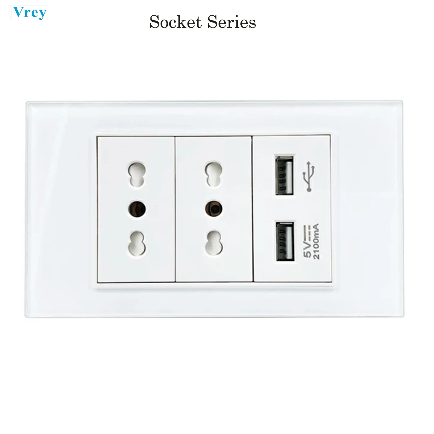 VREY Italy Chile standard dual power socket 14A dual USB2.1A charging port, luxurious tempered glass panel
