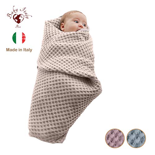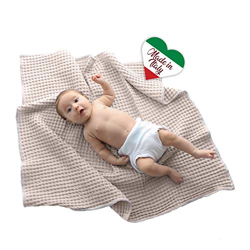 Baby Italy Copertina Neonato Multiuso in Cotone Biologico per Carrozzina Culla Lettino Passeggino Prodotto Italiano 70x90cm (Panna-Beige)