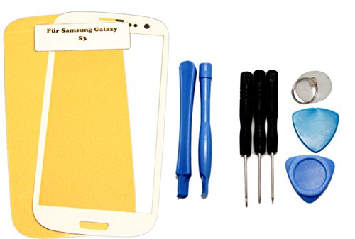 ITech Germany Samsung Galaxy S3 Anteriore proteggi schermo di vetro Bianco - Di alta qualità touchscreen arnesi per riparazioni per i9300 i9301 i9305 NEO LTE con strumenti e adesivo laminato