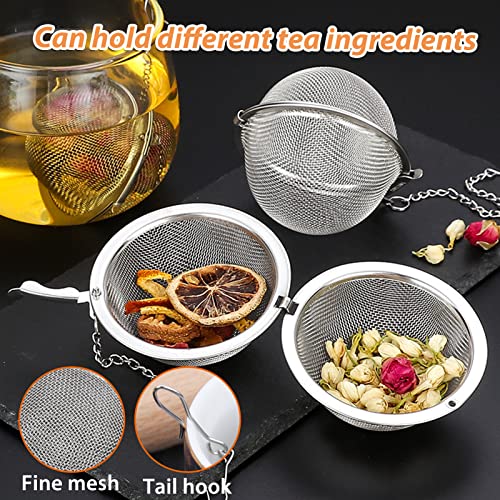 ITGOOS 2 Pezzi Filtro Sferico a Rete per Il Tè Filtro da tè Infusore tè Filtro per Tisane Contenitore per Spezie Con Catena di Estensione Acciaio inox Argento