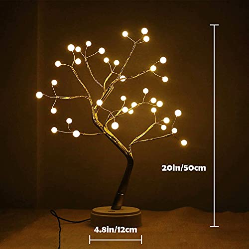 ITICdecor Bonsai, lampada da tavolo con 36 luci LED, interruttore touch, USB e batteria, alimentatore di rete, luce notturna per camera da letto, ufficio, matrimonio, decorazione (bianco caldo)