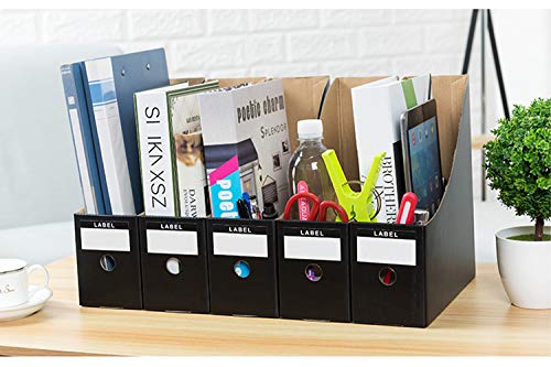 Itoda, confezione da 5 portariviste, impermeabili, in cartone, organizer da scrivania, raccoglitori verticali, per documenti, divisori per scuola, ufficio, casa, biblioteca Nero. Confezione da 5.