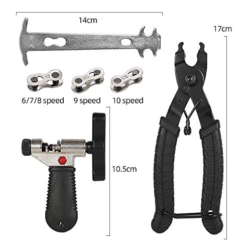 Set di attrezzi per la riparazione della catena della bicicletta: perfetto per tutte le riparazioni della catena, la confezione include pinze per catena della bicicletta, splitter e scartatore della catena, 6 paia di maglie mancanti per catene da 6, 7, 8, 9, 10 velocità.