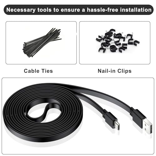 (Facile da Installare) L'ampia opzione di questo cavo di alimentazione consente di installare la videocamera esattamente dove serve, senza doversi preoccupare della distanza tra la presa di corrente e il dispositivo. Le clip per unghie e le fascette incluse facilitano il passaggio del cavo lungo il muro e impediscono al cavo di interrompere l'arredamento della tua proprietà.