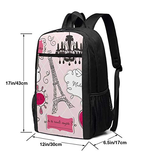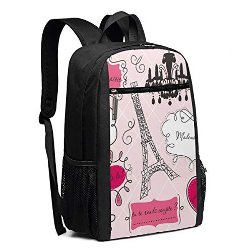 ITSHHMB 17 inch School Laptop Backpack,Doodle Frames in French Style Rococo Baroque Lantern Mademoiselle Theme Print,Casual Daypack for Business/College/Women/Men