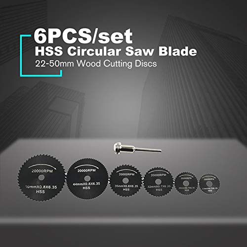 ItYukiko 6PCS HSS Circular Saw Blade Rotary Tool 22-50mm Wood Cutter Discs with Mandrel
