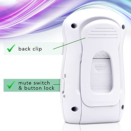Altre grandi caratteristiche includono: interruttore promemoria infermieristica, allarmi timer, luce notturna soft-bagliore, display illuminato, orologio e una clip posteriore