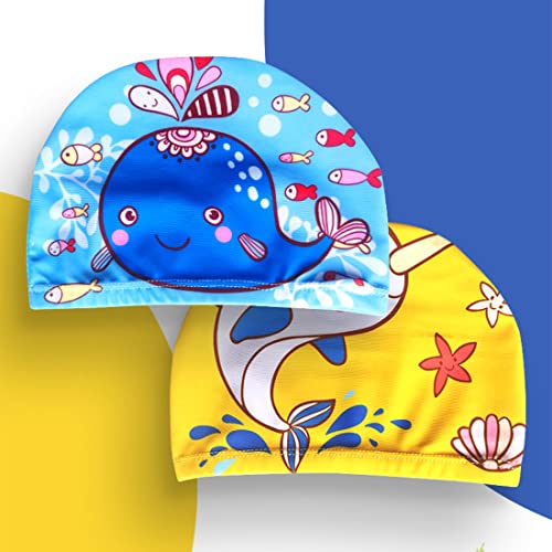 IUDWCG - 2 Pcs Cuffia da nuoto in silicone per bambini, cuffia da piscina per bambina in nylon, cuffia da piscina per bambini in gomma impermeabile e antiscivolo (stile cartone animato carino)