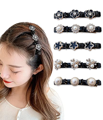 IUDWCG 5 Pezzi Fermaglio per Capelli con Strass Trifoglio, Sparkling Crystal Stone Braided Hair Clips, Fermaglio per Capelli Laterale a Tre Fiori, Fermagli per Capelli Intrecciati con Strass