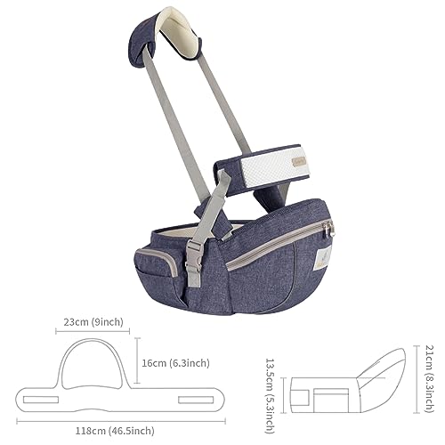 Grande Capacità -- Questo seggiolino per bambini inserisce una robusta plastica all'interno della tasca principale con pad ammortizzato antiscivolo in modo che il vostro bambino può sedersi comodamente senza scivolare facilmente. Baby hipseat carrier ha un grande spazio di archiviazione, è possibile memorizzare roba del bambino come pannolini, bottiglie ecc.