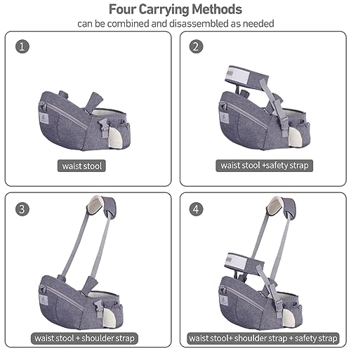 IULONEE Marsupio per Seggiolini Sgabello Ergonomico Della Vita con una Tracolla Regolabile Singola e Cintura di Sicurezza Anteriore Infant Carry Hipset Carrier per 3-36 Mesi Grigio