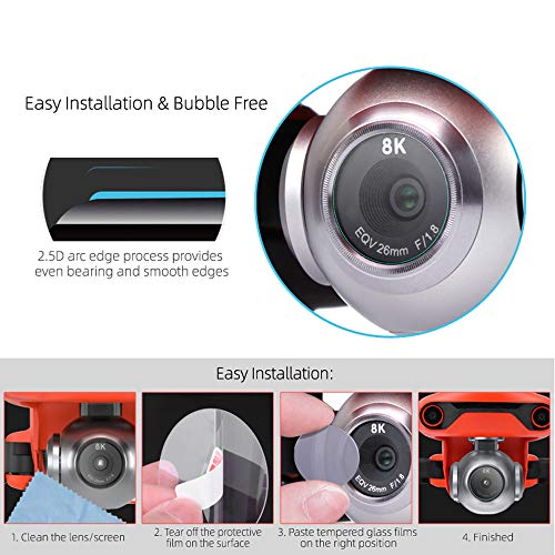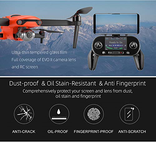 Iunser Pellicola temperata per schermo telecomando 4Pc, lente per occhiali temperati + pellicola per schermo controller Pellicola per lenti Uav per Autel Robotics Evo 2 8K(2Pc)