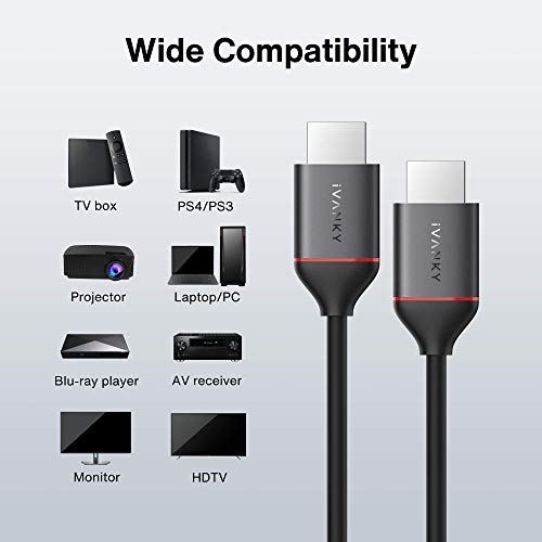 IVANKY Cable HDMI 1 Metro, HDMI Cable 18Gbps, Compatible con 4K @ 60Hz, HDCP 2.2/1.4, 1080p, Ethernet, Dolby Audio, Xbox PS3/4, BLU-Ray, Xbox, PC