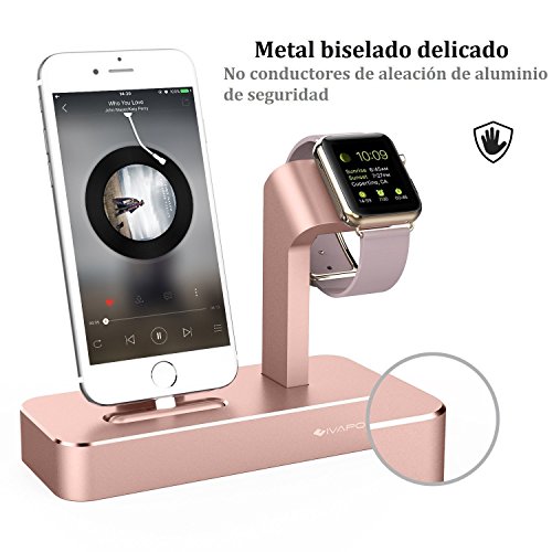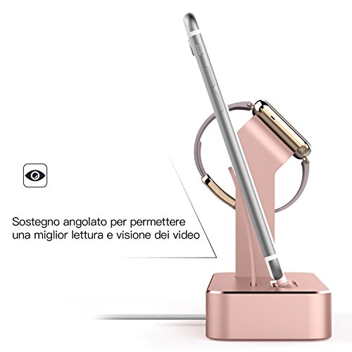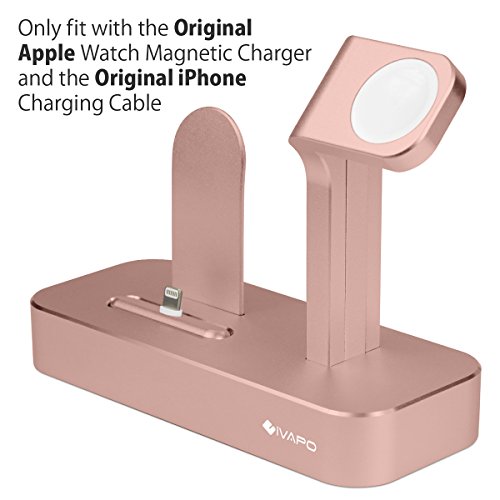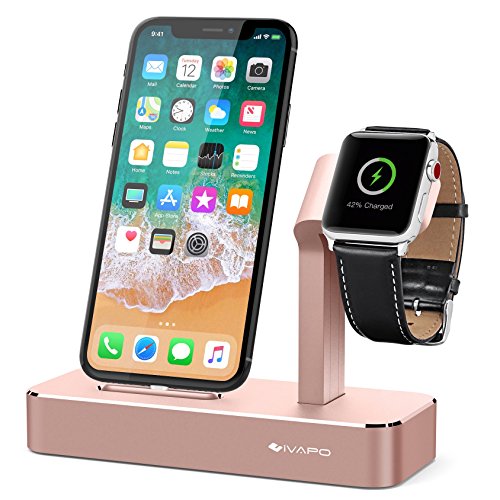 IVAPO 2 in 1 Supporto per Apple Watch Series 3 / Apple Watch Series 1 / Apple Watch Nike + Apple Watch Series 2 / iPhone X / iPhone 8 Plus / iPhone 8 / iPhone 7/ iPhone 6S Plus / iPhone SE / iPhone 5S (Rosa d'oro)
