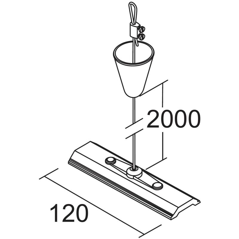 Kit di sospensione Ivela Adatto per binari quadri trifase Ivela Lunghezza filo: 2000 mm Dimensione piastra: 120 mm Materiale: acciaio Colore: Bianco