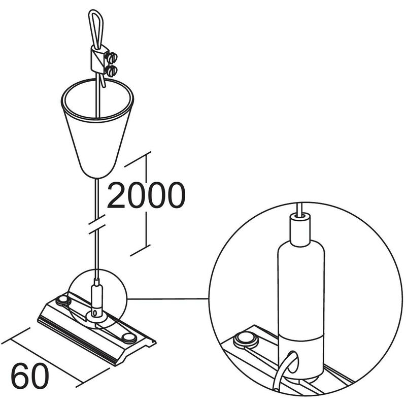 Kit di sospensione Ivela Adatto per binari quadri trifase Ivela Lunghezza filo: 2000 mm Dimensione piastra: 60 mm Con bloccaggio automatico del cavo Materiale: acciaio Colore: Nero