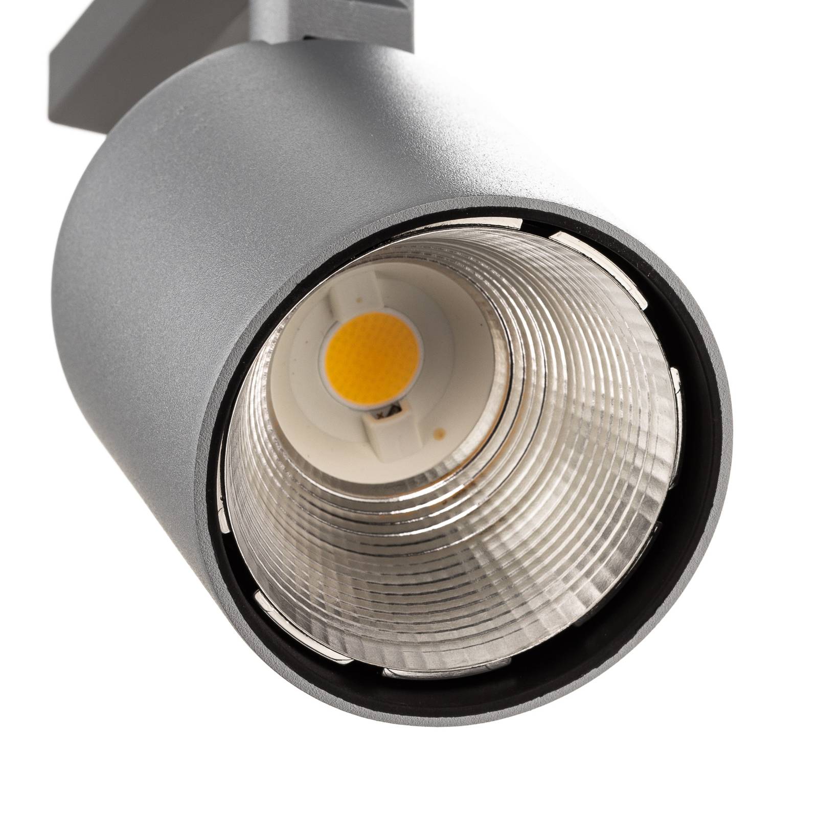 Faretto LED Perfetto Puro luminoso per binario trifase In combinazione con il binario trifase LKM, questo moderno faretto LED garantisce un'illuminazione luminosa dell'area. Perfetto Puro è un faretto in alluminio con finitura monocromatica, ridotto all'essenziale. La testa cilindrica può essere regolata per illuminare l'area desiderata della stanza. L'elemento centrale è costituito dai potenti LED COB, la cui luce è diretta attraverso un riflettore metallico e fornisce un'illuminazione adeguata a bassa perdita, soprattutto in aree pubbliche come locali commerciali, aree di vendita e sale per ricevimenti/riunioni negli hotel. - Fornito con adattatore per binari e zavorra - controllo dell'abbagliamento: UGR 20 - angolo di apertura del fascio medio-ampio: 30° - ruotabile di 355°, orientabile di 90