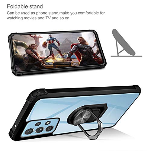 Ivencase Cover Compatibile con Samsung Galaxy A52 4G/5G, 2 Pezzi Vetro Temperato, Trasparente Airbag Antiurto Custodia con 360 Gradi Magnetico Supporto Silicone Bumper Case - Nero