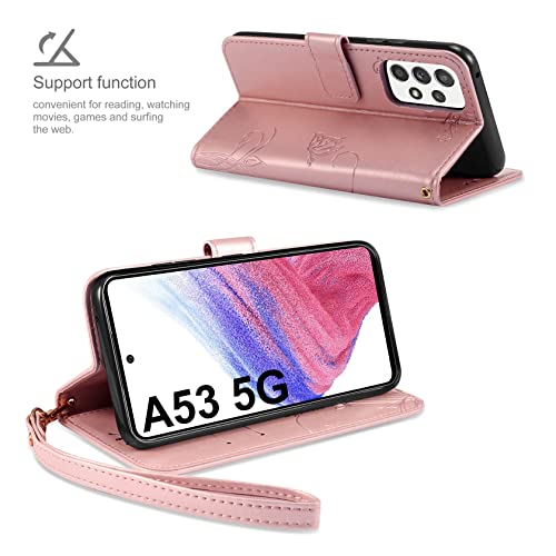 Ivencase Cover Compatibile con Samsung Galaxy A53 5G, Book Cover Custodia Flip Caso in PU Pelle Portafoglio Magnetica Porta Carta Kickstand Cover - Rosa
